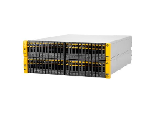Два базовых корпуса высотой 2U для системы 3PAR StoreServ 8450, 4 узла контроллера, 384 Гбайт кэш-памяти, 8 разъемов FC 16 Гбит/с, 4 слота для адаптеров и 48 отсеков для дисков малого форм-фактора.